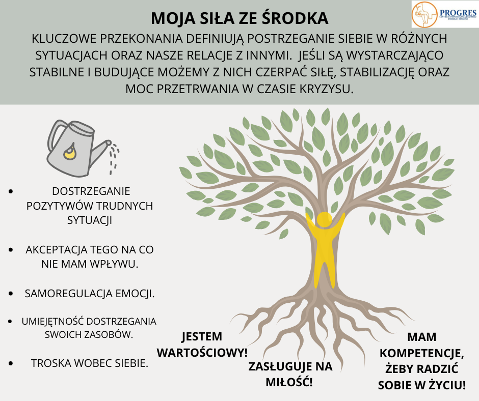 Ważne, aby wiedzieć, że siłę mamy w sobie. Można nauczyć się czerpać z zasobów, które w nas są.Przekonania podstawowe, które każdy z nas posiada, zawierają podstawową wiedzę o nas samych, innych ludziach oraz świecie, w którym żyjemy.